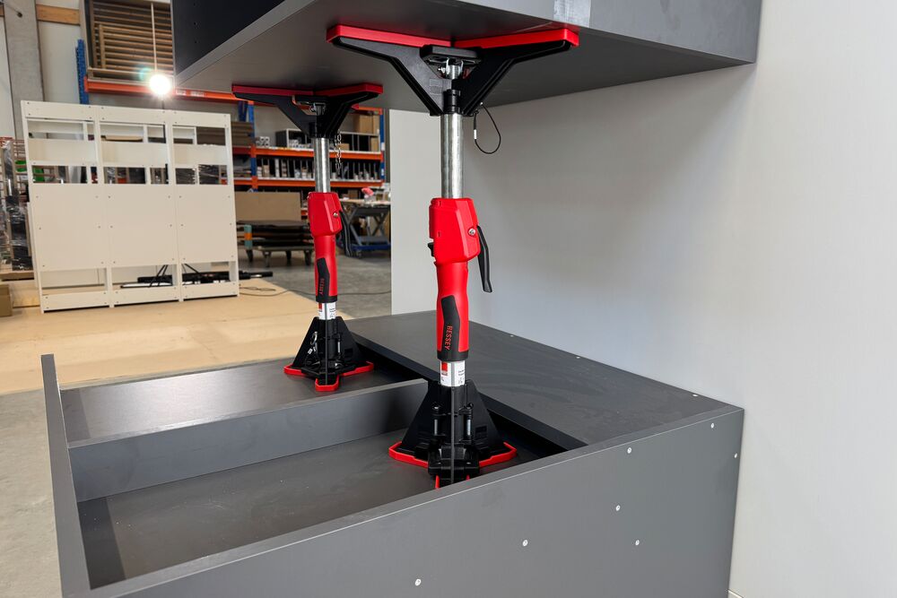 Ob im Küchen- und Ladenbau zum Positionieren von Oberschränken oder im Trockenbau zum Befestigen von Baumaterialien in großer Höhe – die sechs Größen der STE-Deckenstützen stehen für hohe Belastbarkeit und komfortable Einhandbedienung.