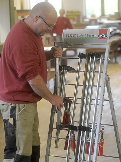 A practical solution for this is a clamp trolley. Because this sturdy metal construction with rollers can hold the clamps sorted by size. In addition, a mobile clamp trolley enables more flexible and faster working, as all clamps are always at hand and clearly sorted directly at the point of use.