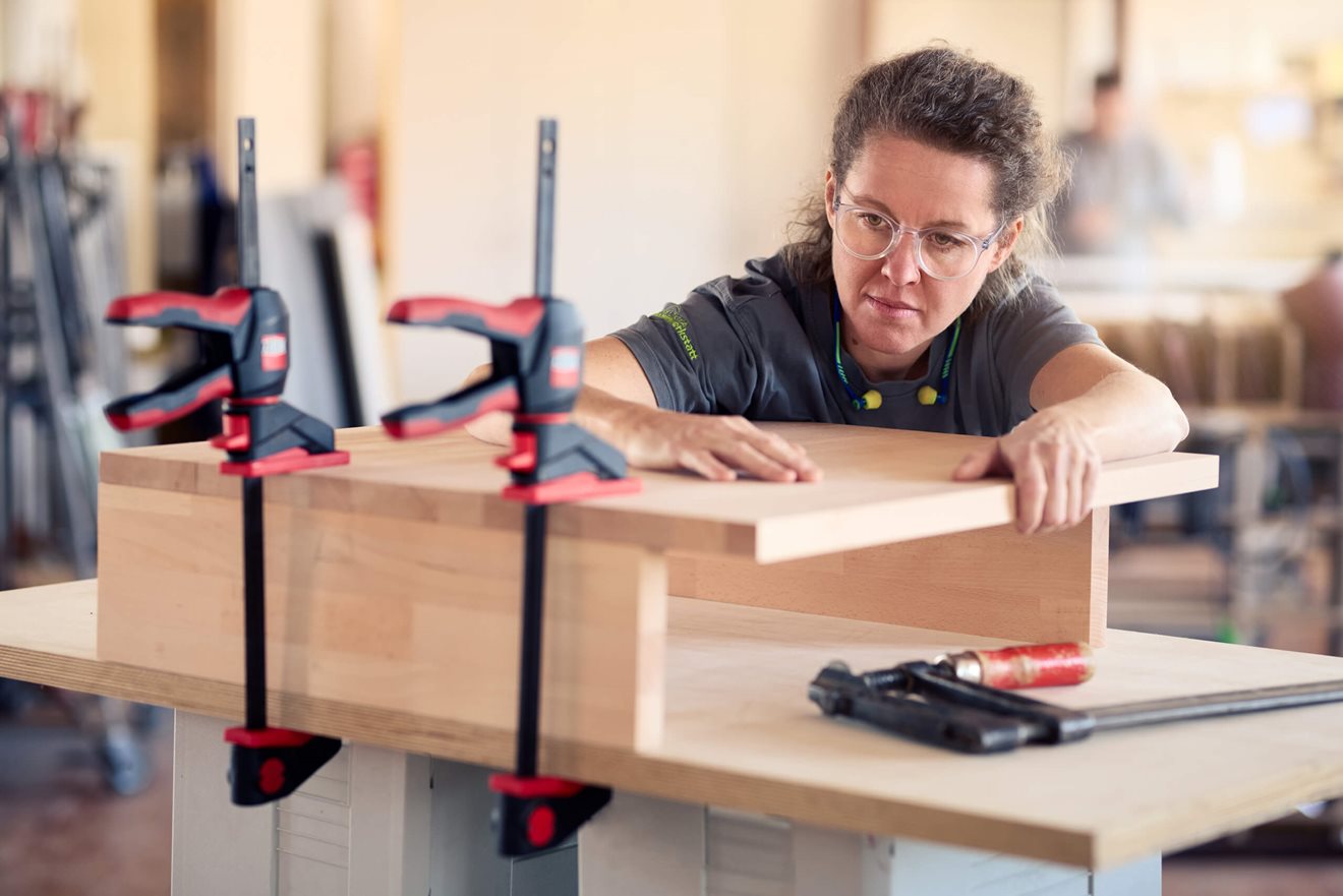 Whether individual pieces of furniture, custom-fit fixtures or detailed woodwork – precision is key in carpentry. BESSEY offers high-quality tools that make everyday work in furniture construction and interior design easier: from versatile one-handed clamps, classics such as malleable cast iron and all-steel clamps, to clever clamping elements and special solutions. Our tools are robust, durable and well-designed – for efficient, safe and energy-saving woodworking.